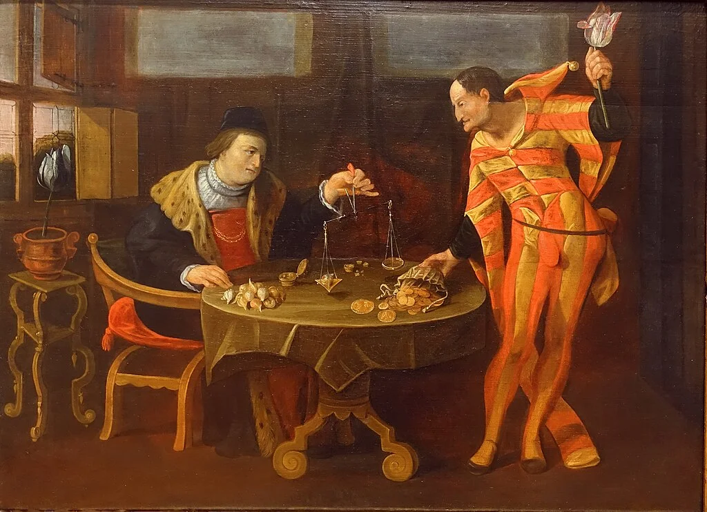 Il ne s’agit pas de la seule représentation picturale ironisant sur la crise de la tulipe, comme ce tableau anonyme datant à peu près de la même époque mettant en scène la pesée des oignons de tulipe.